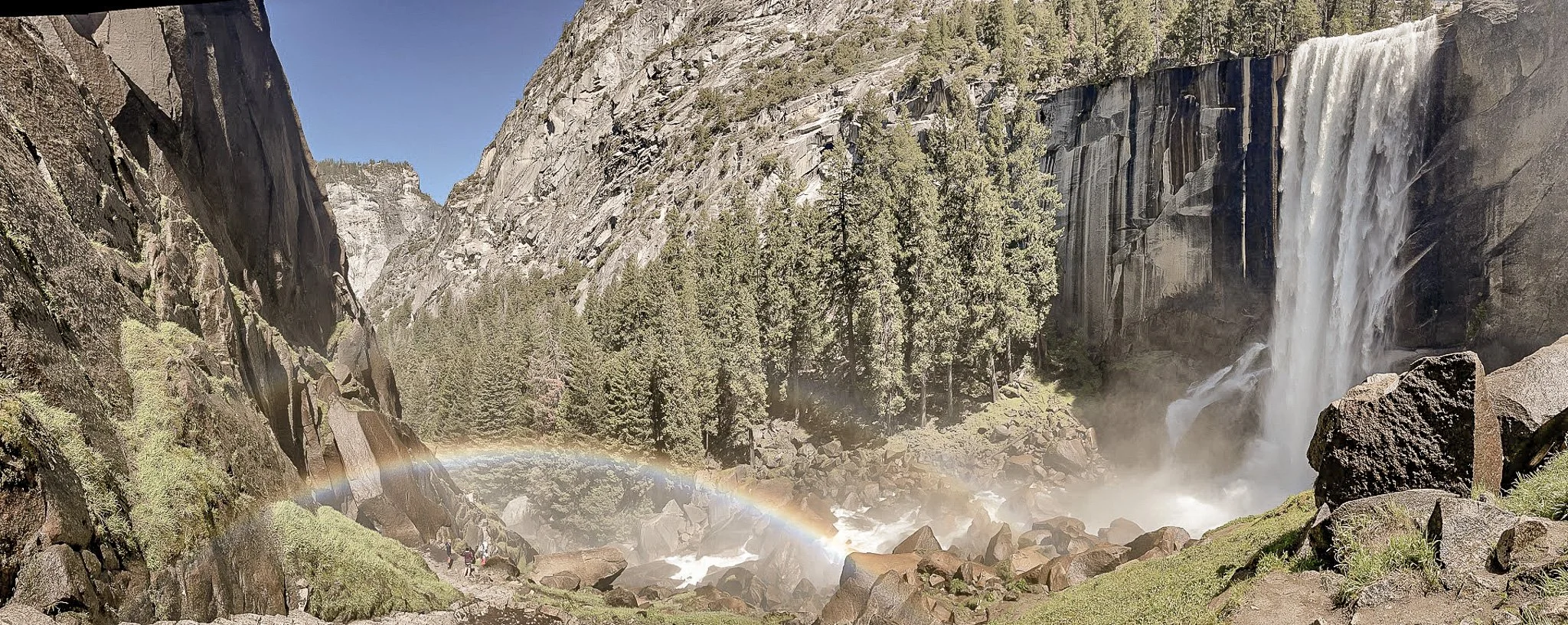 Waking up in Curry Village made such a difference time-wise. We were already in the park and could get a head start on the day. We packed our hiking packs and started towards Vernal Falls on Mist Trail. The falls were beautiful and had a continuous rainbow. The hike was strenuous in some spots, but we made it to the base of the falls. We felt we didn’t need to go to the top since everything was wet and slippery, so we returned to camp.
